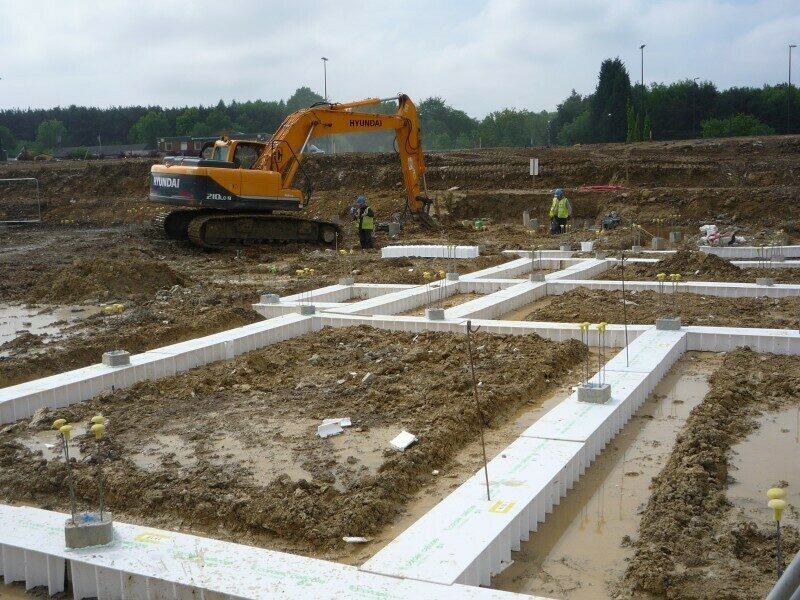À utiliser sous les dalles de béton armé pour protéger contre les effets potentiels du gonflement du sol, avec l’avantage supplémentaire de fournir une isolation.
